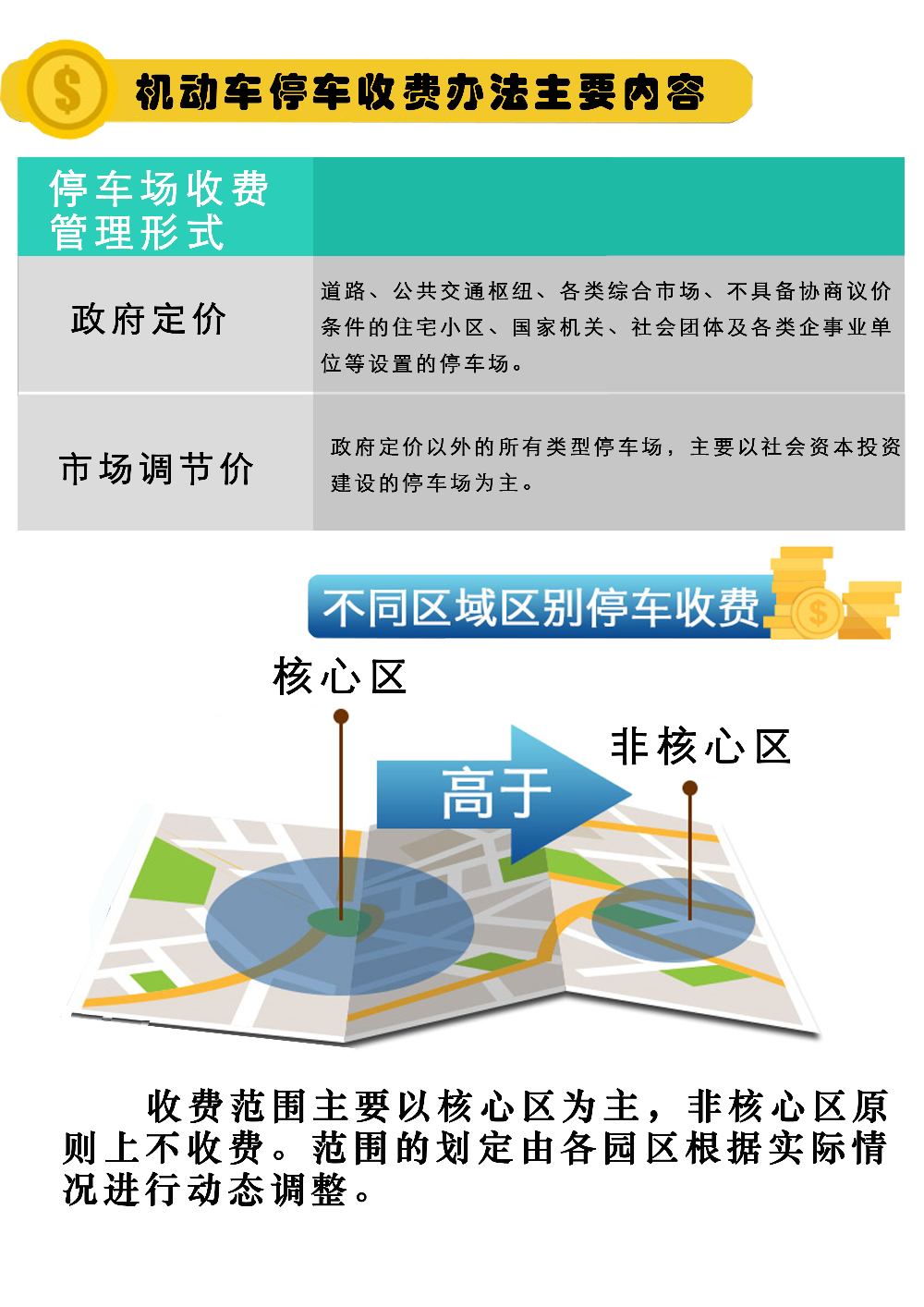 二是停車(chē)收費(fèi)范圍的劃定。收費(fèi)范圍主要以核心區(qū)為主,非核心區(qū)原則上不收費(fèi)。范圍的劃定由各園區(qū)根據(jù)實(shí)際情況進(jìn)行動(dòng)態(tài)調(diào)整。