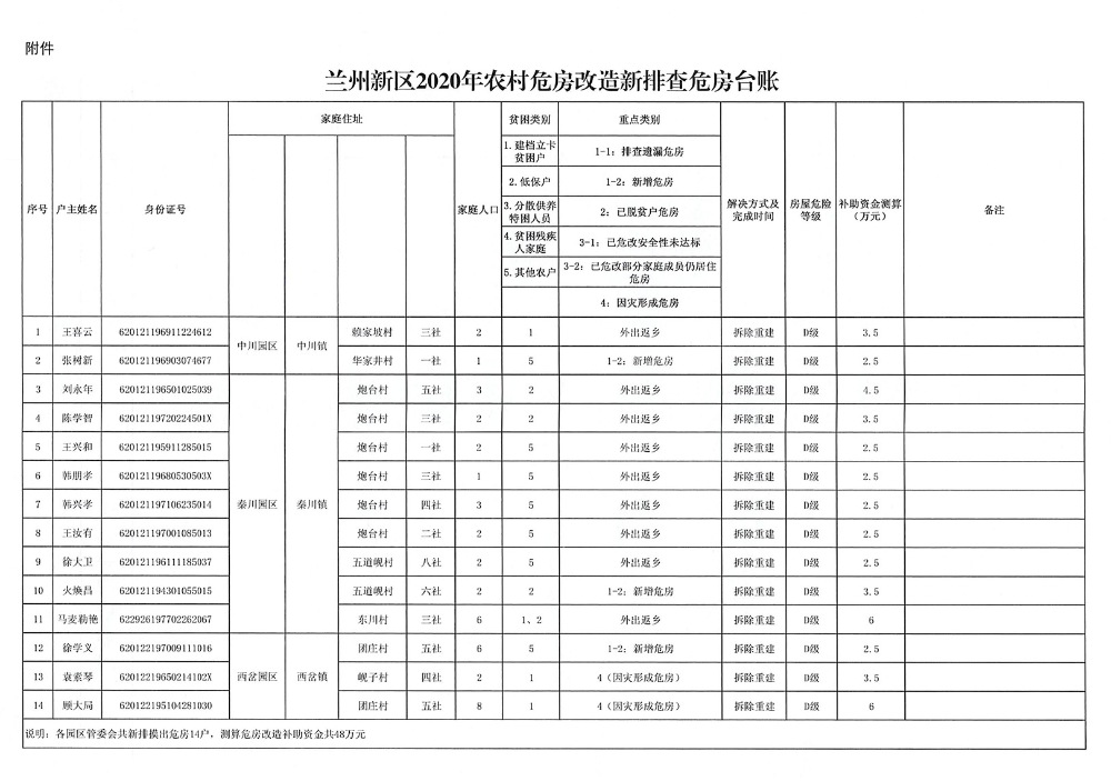 附件:蘭州新區(qū)2020年農(nóng)村危房改造新排查危房臺(tái)賬