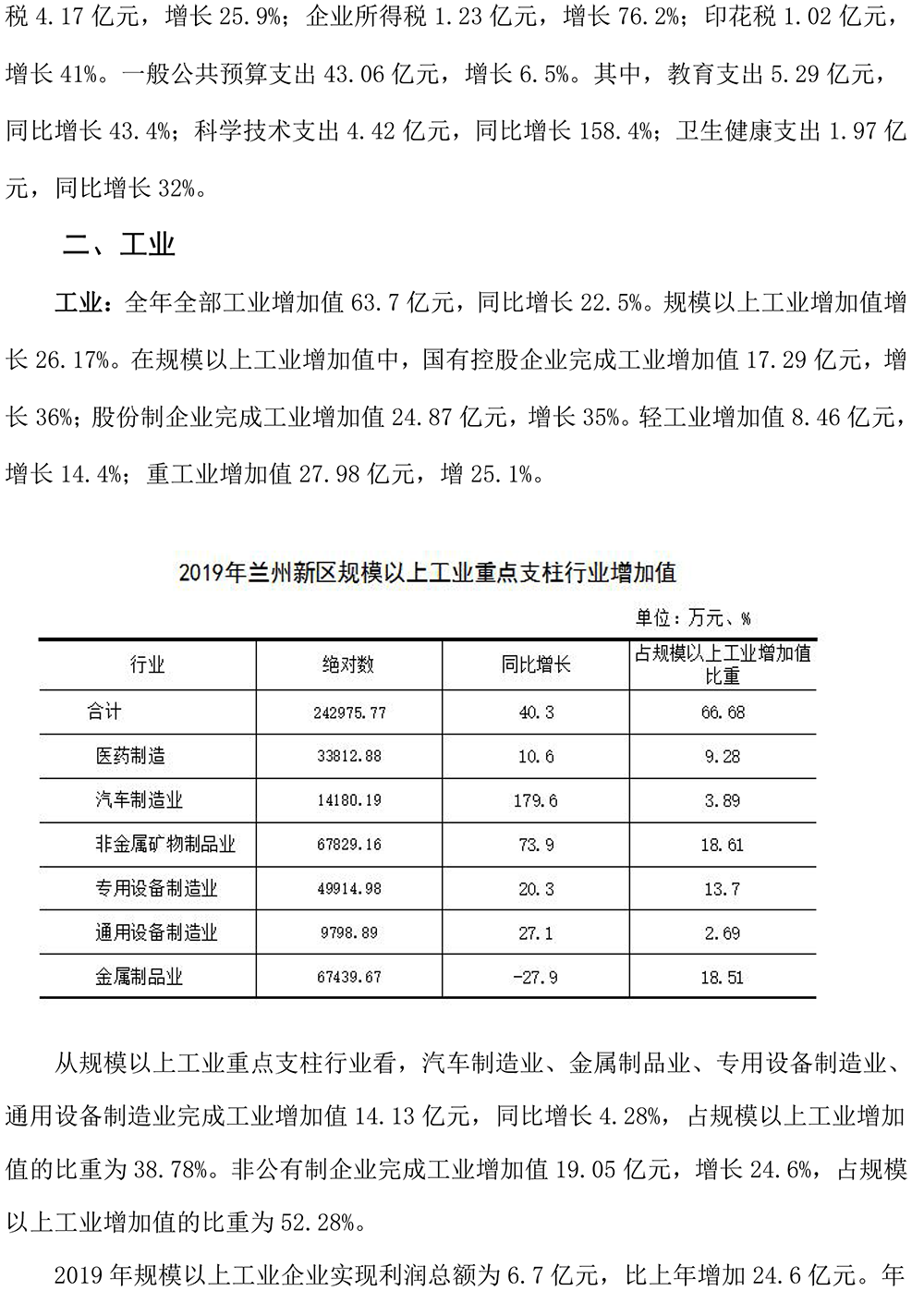 2019年蘭州新區(qū)國(guó)民經(jīng)濟(jì)和社會(huì)發(fā)展統(tǒng)計(jì)公報(bào)