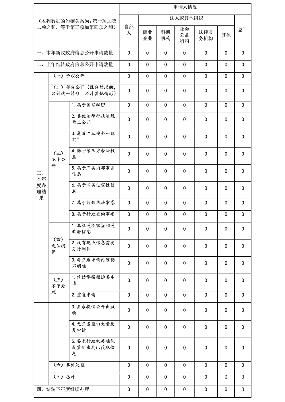 三、收到和處理政府信息公開申請情況