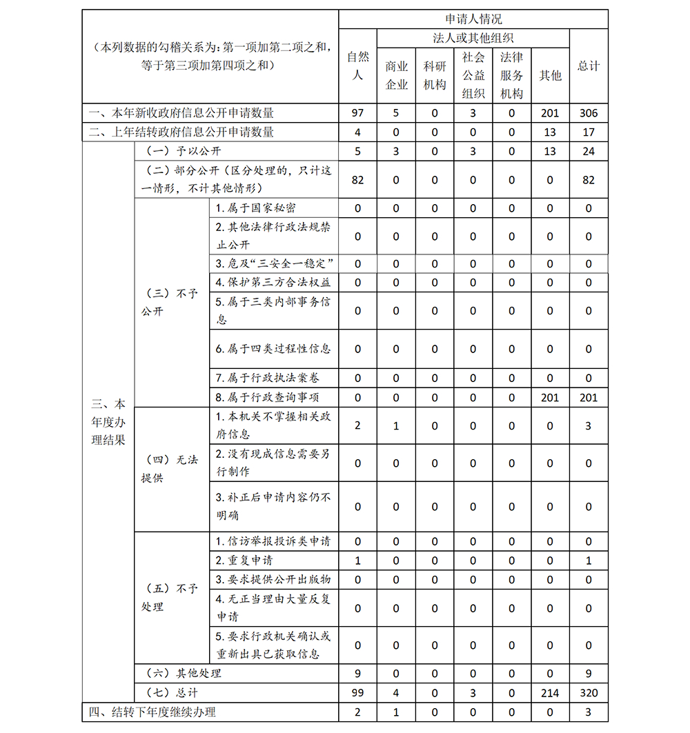 三、收到和處理政府信息公開申請情況