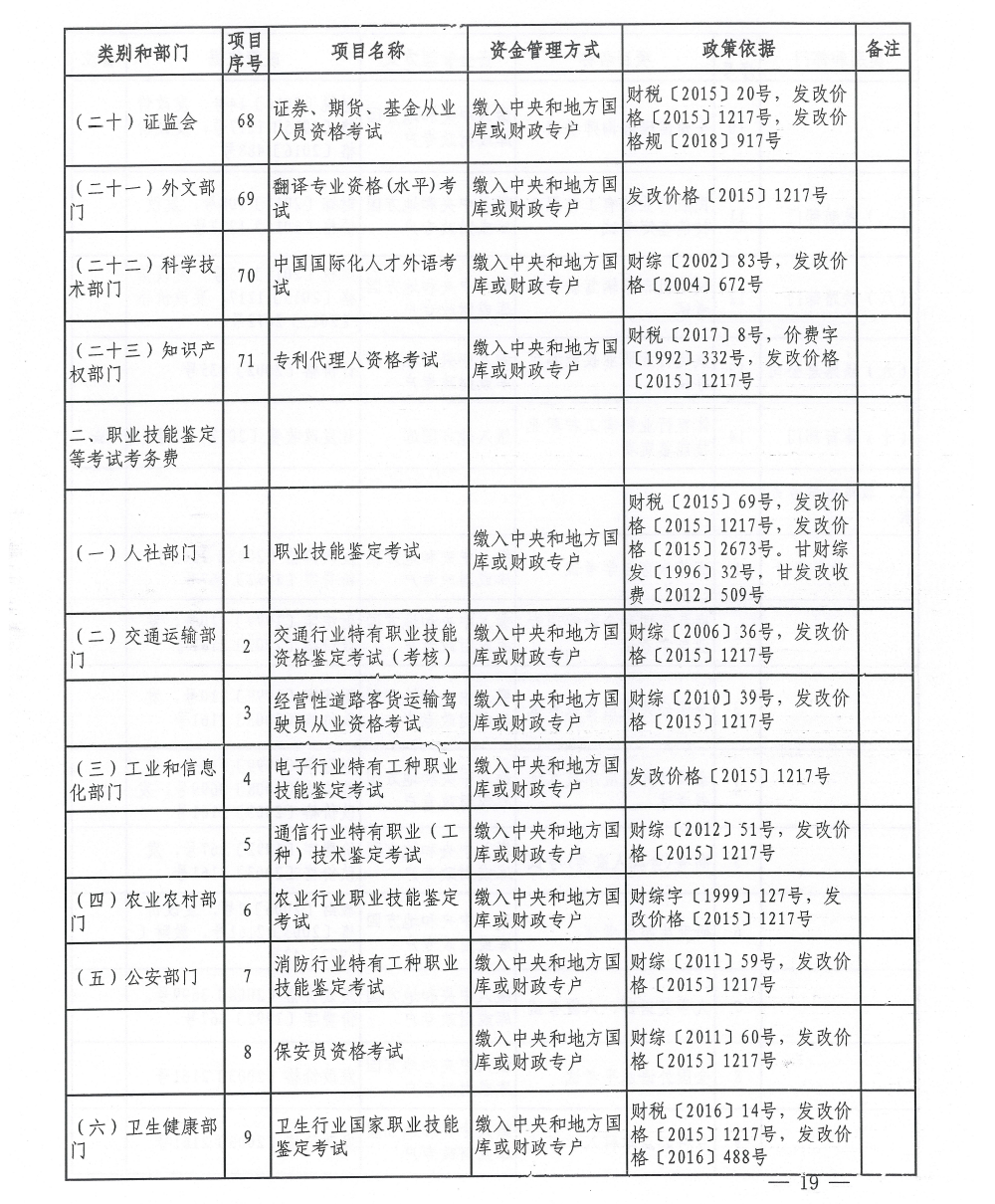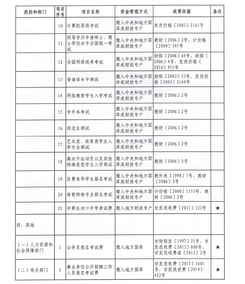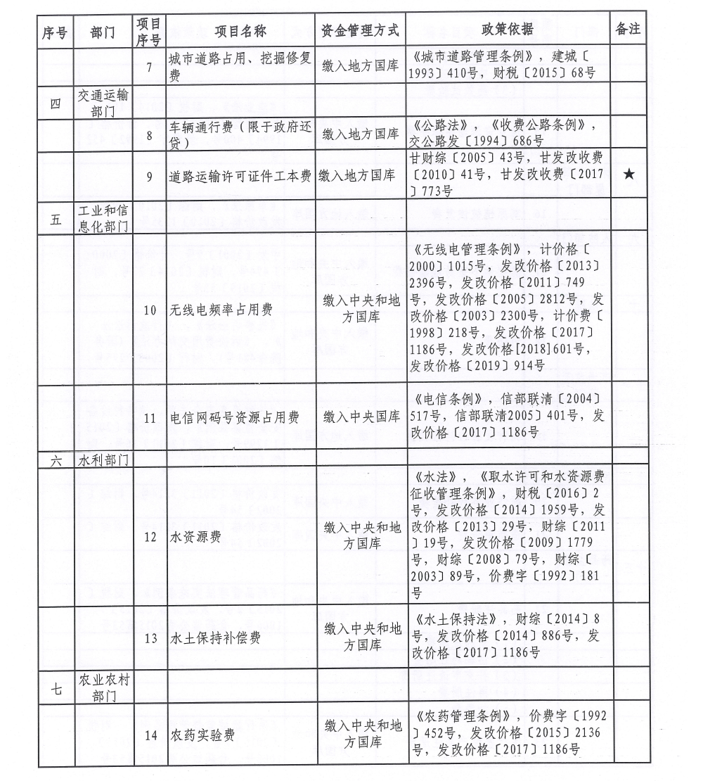 甘肅省財(cái)政廳 甘肅省發(fā)展和改革委員會(huì)關(guān)于公布行政事業(yè)性