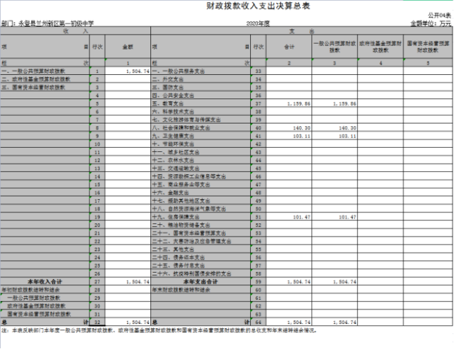 2020年度蘭州新區(qū)第一初級(jí)中學(xué)部門決算