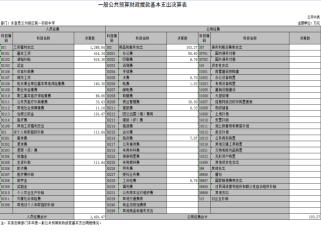 六、一般公共預(yù)算財(cái)政撥款基本支出決算表