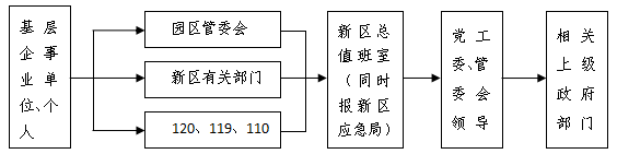 ?。?)超出屬地園區(qū)管委會(huì)應(yīng)對(duì)能力或跨園區(qū)的突發(fā)事件,由新區(qū)管委會(huì)提供支援或者負(fù)責(zé)應(yīng)對(duì),超出新區(qū)管委會(huì)應(yīng)對(duì)能力的突發(fā)事件,逐級(jí)報(bào)省市政府協(xié)調(diào)應(yīng)對(duì)。