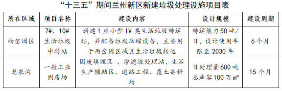“十三五”期間,蘭州新區(qū)積極建設(shè)生活、建筑垃圾無害化處理設(shè)施,全面提升了垃圾無害化、減量化、資源化綜合處理水平;建成1座一般工業(yè)固廢場,日處理能力600噸,總庫容100萬立方米;建成西岔園區(qū)生活垃圾中轉(zhuǎn)站2座,日轉(zhuǎn)運(yùn)能力50噸。