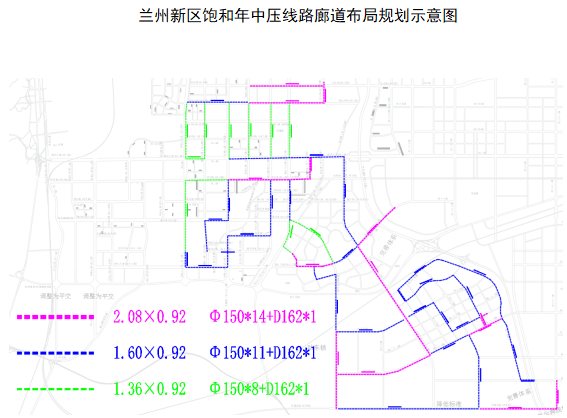 蘭州新區(qū)氣源為中石油“蘭銀”線,設(shè)計(jì)壓力10兆帕,管徑為DN600。已建輸氣管道設(shè)計(jì)壓力10.0兆帕,管徑DN500,長約12.47公里,起點(diǎn)為“蘭銀”線3號(hào)閥室,終點(diǎn)為蘭州新區(qū)1#門站。