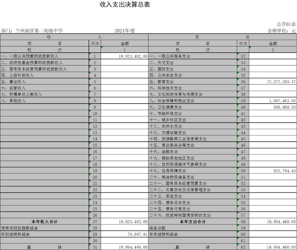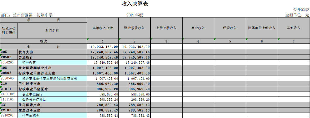 2021年度蘭州新區(qū)第二初級中學(xué)部門決算