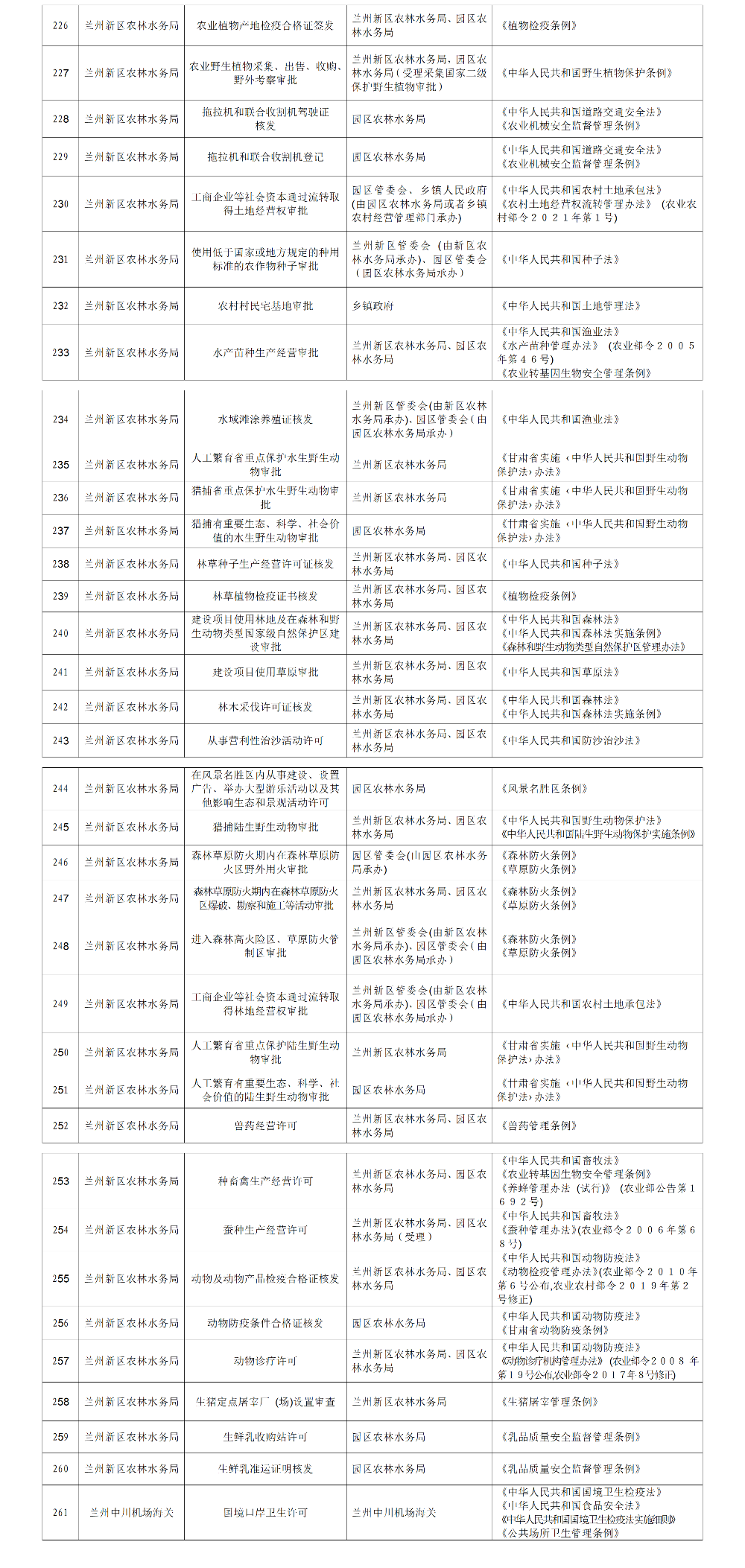 蘭州新區(qū)行政許可事項清單(2022年版)