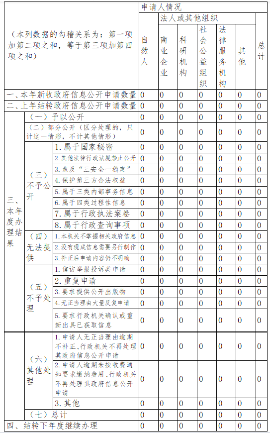2022年蘭州新區(qū)民政司法和社會保障局(退役軍人事務局)政府信息公開報告,根據(jù)《中華人民共和國政府信息公開條例》,對照《蘭州新區(qū)政務公開領導小組辦公室關于做好2022年政府信息公開工作年度報告編制和發(fā)布工作的通知》要求,結(jié)合蘭州新區(qū)民政司法和社會保障局(退役軍人事務局)年度政府信息公開情況編制。年度報告內(nèi)容由總體情況、主動公開政府信息情況、收到和處理政府信息公開申請情況、政府信息公開行政復議、行政訴訟的情況、存在的主要問題及改進情況、其他需要報告的事項等六部分組成。