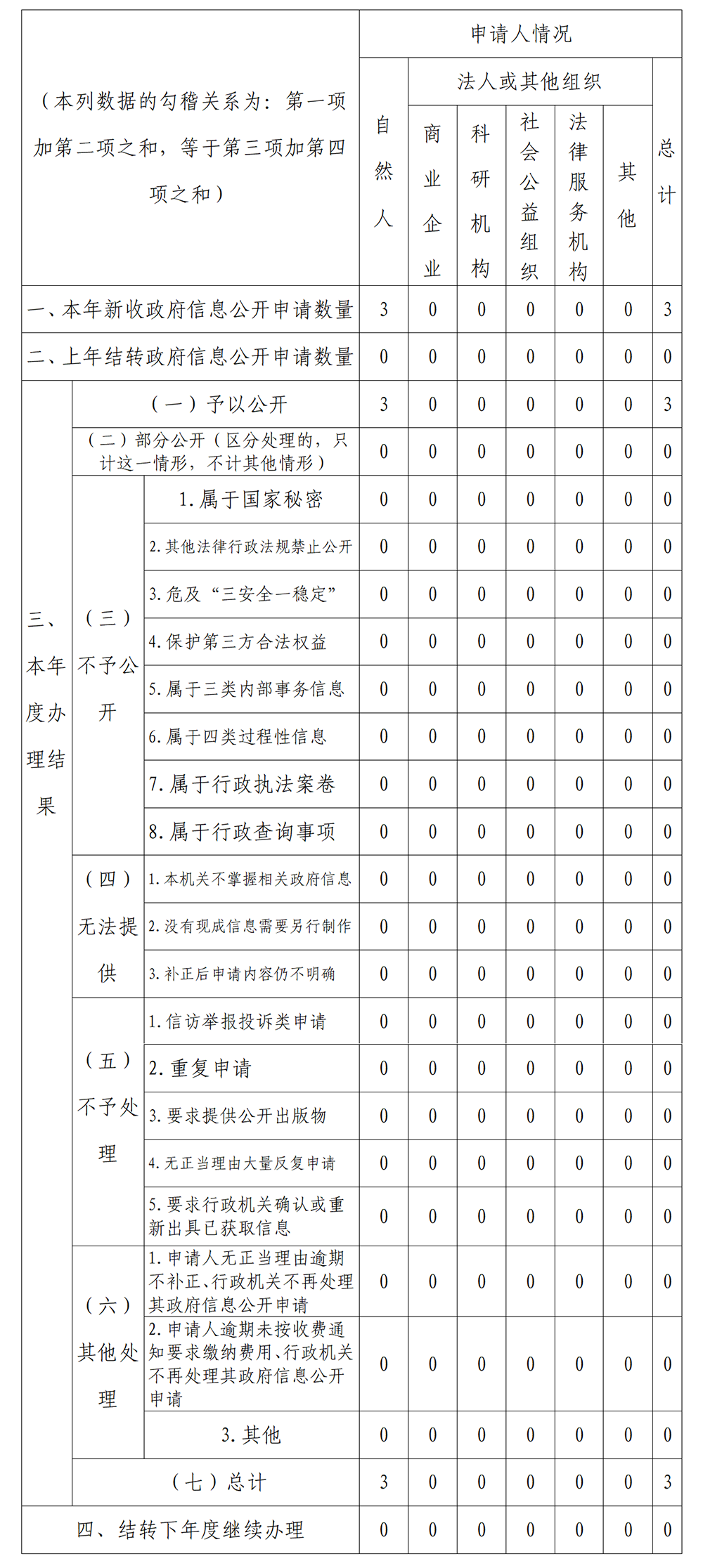 三、收到和處理政府信息公開申請情況