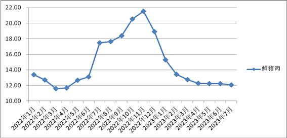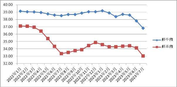 7月份,我省鮮豬肉、牛肉、羊肉、雞肉平均零售價每500克分別為12.08元、36.81元、33.04元、14.94元,環(huán)比,雞肉上漲0.95%,豬肉、牛肉、羊肉分別下降1.23%、2.62%、3.19%;同比,豬肉、牛肉、羊肉分別下降30.85%、4.39%、0.96%,雞肉上漲3.39%。