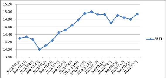 7月份雞肉價格環(huán)比、同比均略漲,其余品種均下降