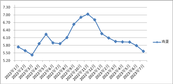 7月份,我省雞蛋平均零售價為5.57元/500克,環(huán)比下降3.80%;同比,下降5.11%。