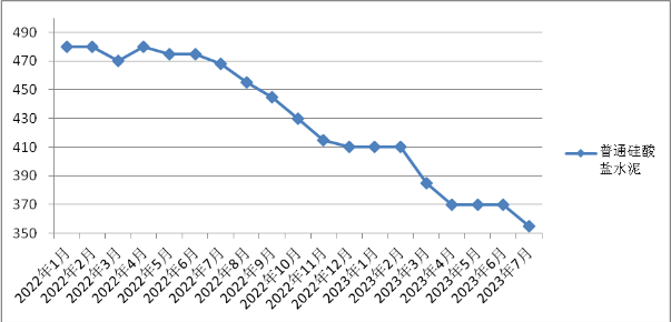 7月份,我省水泥平均出廠價格每噸為355元,環(huán)比下降4.05%,同比下降24.15%。