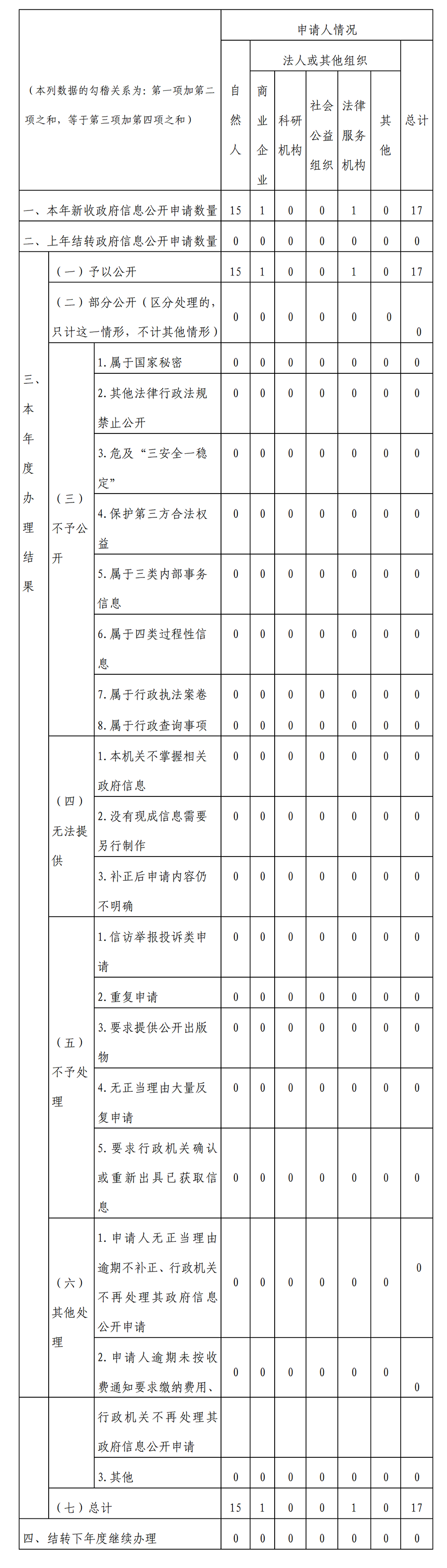 業(yè)創(chuàng)新的重要方法。聚焦企業(yè)和群眾需求,最大限度保障公民、法人和其他組織依法、便捷獲取政府信息,更好滿足申請(qǐng)人對(duì)政府信息的個(gè)性化合理需求。2023年,全局共接收政府信息公開申請(qǐng)17件,辦結(jié)17件。