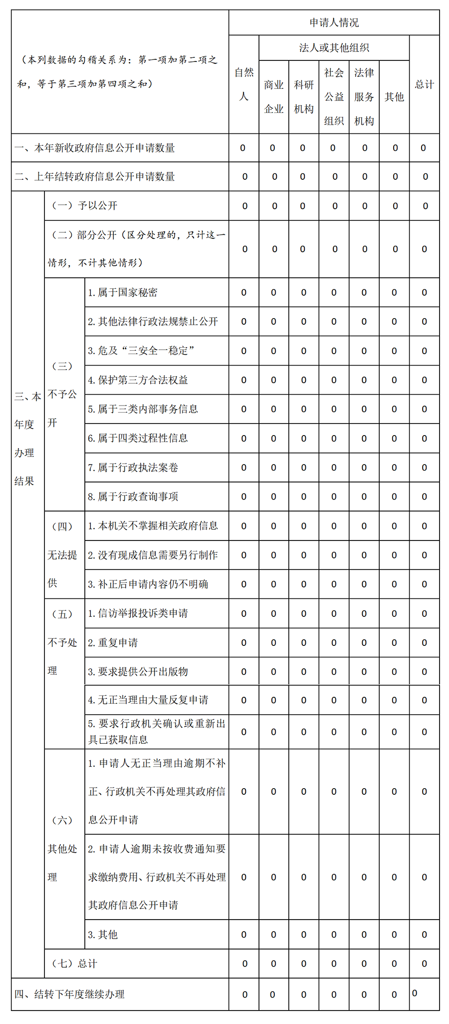 2023年未收到政府信息公開申請,未發(fā)生行政復(fù)議、行政訴訟情況。