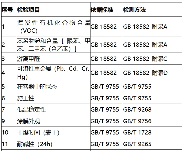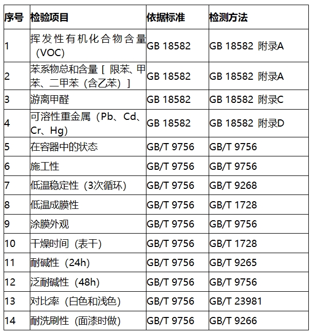 合成樹脂乳液外墻涂料檢驗項目、依據(jù)、方法
