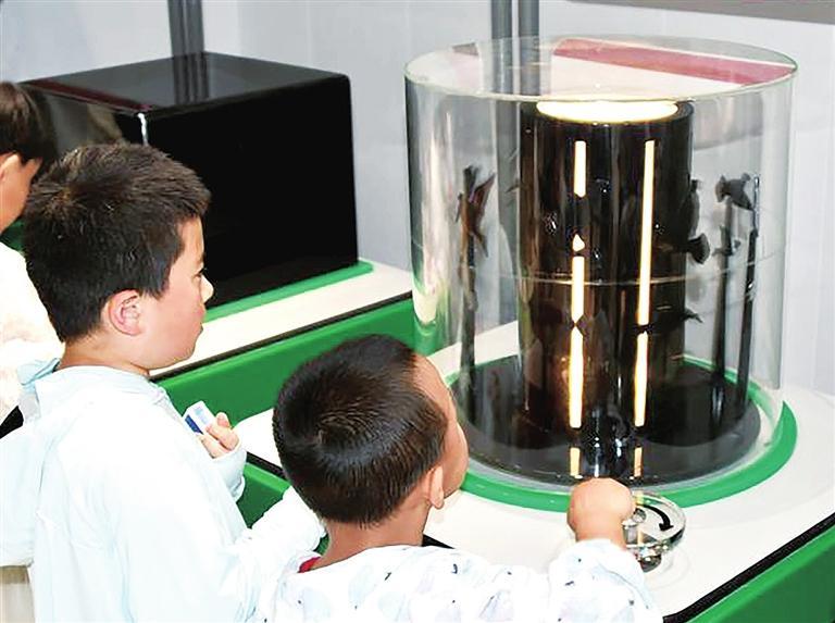 “這個真好玩!眼前的畫面就像電影和動畫片。”只見一個小朋友興致勃勃地來到“鏡面立方體”前,感受科技帶來的快樂。