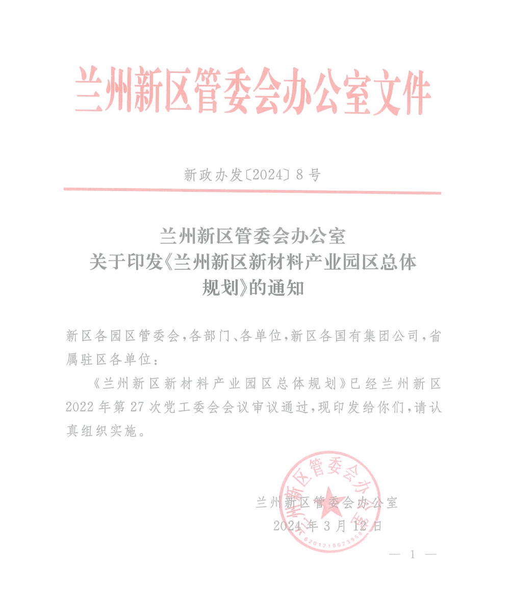 關(guān)于印發(fā)《蘭州新區(qū)新材料產(chǎn)業(yè)園區(qū)總體規(guī)劃》的通知