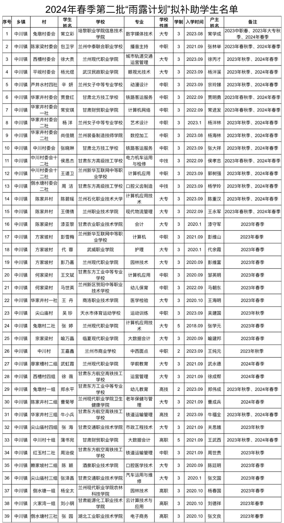 附件:中川園區(qū)2024年春季第二批“雨露計(jì)劃”擬補(bǔ)助名單