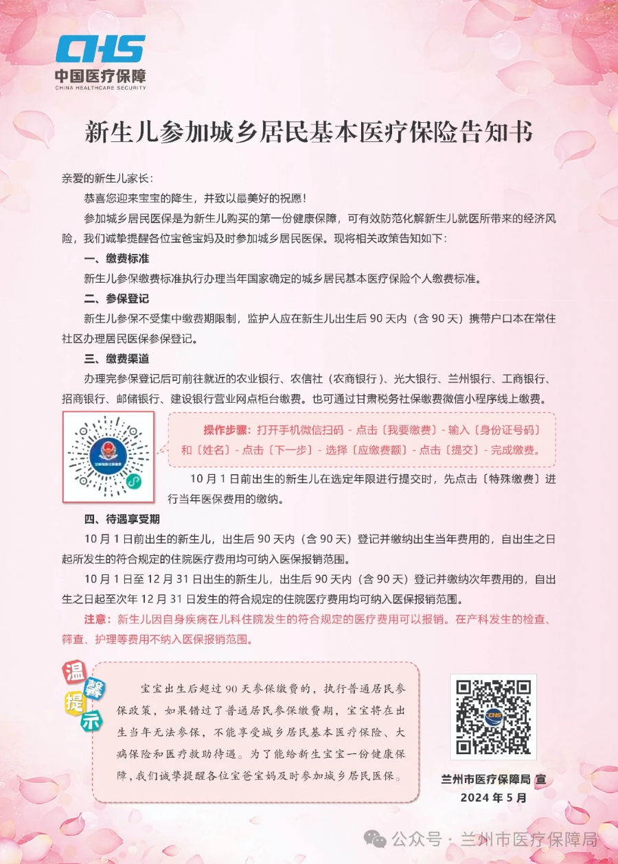 參加城鄉(xiāng)居民醫(yī)保是為新生兒購買的第一份健康保障,可有效防范化解新生兒就醫(yī)所帶來的經(jīng)濟風險,我們誠摯提醒各位寶爸寶媽及時參加城鄉(xiāng)居民醫(yī)保?,F(xiàn)將相關(guān)政策告知如下: