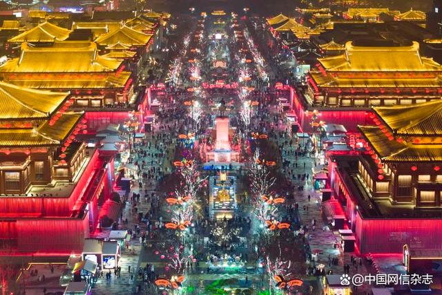 2024年2月2日拍攝的西安大唐不夜城景色(無(wú)人機(jī)照片)。新華社記者 邵瑞 攝