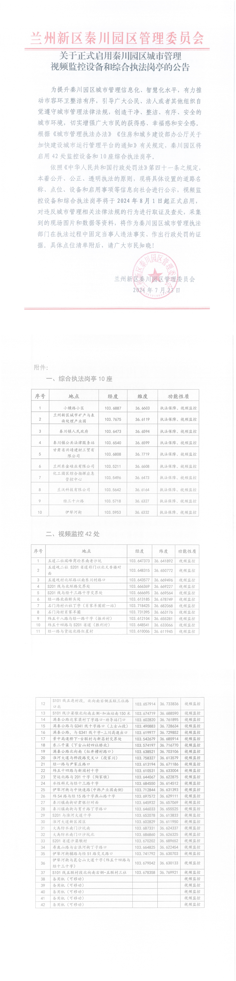 關(guān)于正式啟用秦川園區(qū)城市管理視頻監(jiān)控設(shè)備和綜合執(zhí)法崗?fù)さ墓?/h2>