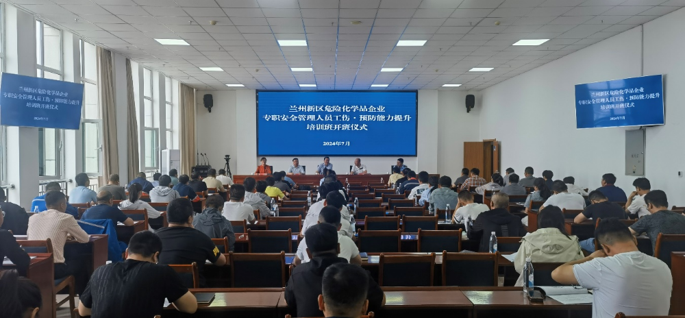 為保障轄區(qū)危險(xiǎn)化學(xué)品企業(yè)從業(yè)人員的生命財(cái)產(chǎn)安全,科學(xué)預(yù)防和減少工傷事故發(fā)生,積極推動(dòng)用人單位開展危險(xiǎn)化學(xué)品企業(yè)工傷預(yù)防能力提升培訓(xùn),切實(shí)提升危險(xiǎn)化學(xué)品企業(yè)安全發(fā)展水平,7月24日由蘭州新區(qū)應(yīng)急管理局、蘭州新區(qū)應(yīng)急管理局秦川分局、蘭州新區(qū)化工園區(qū)管理委員會(huì)主辦,蘭州新區(qū)化工園區(qū)精細(xì)化工行業(yè)協(xié)會(huì)、蘭州新區(qū)石化人力資源培訓(xùn)有限公司承辦的蘭州新區(qū)危險(xiǎn)化學(xué)品企業(yè)專職安全管理人員工傷預(yù)防能力提升培訓(xùn)正式開班。本次培訓(xùn)組織化工園區(qū)75家危險(xiǎn)化學(xué)品企業(yè)共計(jì)121名危險(xiǎn)化學(xué)品企業(yè)專職安全管理人員參加培訓(xùn)。