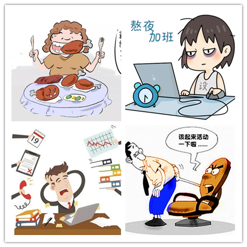 由于工作智能化、機(jī)械化和自動(dòng)化,電腦成為了現(xiàn)代職場(chǎng)人的工作伙伴,許多人長(zhǎng)時(shí)間使用電腦,伏案工作靜坐時(shí)間很長(zhǎng),再加上出行開車、家務(wù)勞動(dòng)等身體活動(dòng)減少、運(yùn)動(dòng)量不足或者不運(yùn)動(dòng)是職業(yè)人群的普遍現(xiàn)象。缺乏身體活動(dòng)導(dǎo)致人體能量消耗少,造成脂肪囤積,很容易催生肥胖和大肚腩,這樣一來,肥胖或超重根本避免不了。