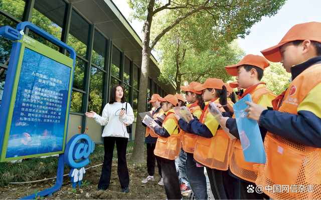 2024年4月10日,江蘇省揚(yáng)州市廣陵小學(xué)的學(xué)生在花都匯互聯(lián)網(wǎng)公園內(nèi)學(xué)習(xí)網(wǎng)絡(luò)法治相關(guān)知識。