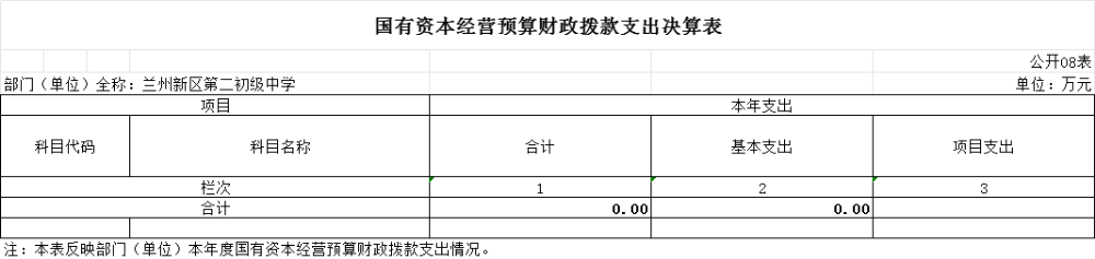 2023年度國有資本經(jīng)營預(yù)算財政撥款本年支出0.00萬元。