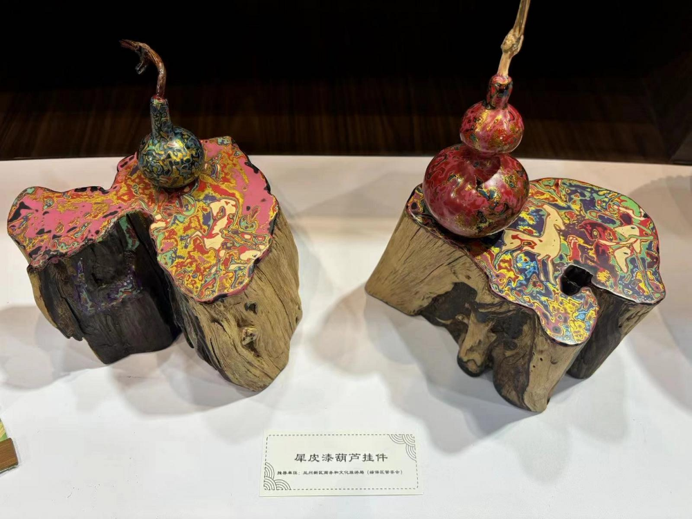 蘭州新區(qū)太平鼓、蛋雕、鋦瓷、大漆犀皮工藝4類20余件非遺文創(chuàng)精品入選參展。其中,飛天箜篌瓶、饕餮龍紋盞、側把柴燒紫砂壺、原創(chuàng)正反兩用大漆方盤、大漆中性筆、犀皮漆葫蘆掛件等文創(chuàng)精品系首次推出。