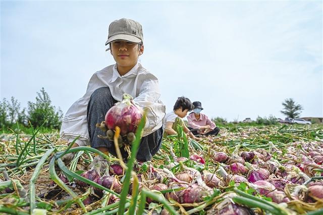 在新區(qū)中川園區(qū)洋蔥種植基地,空氣中彌漫著洋蔥清香,村民們忙著清理洋蔥的泥土、修剪根葉、分揀裝袋。洋蔥收獲期,大量的用工需求吸引了周圍村民的積極參與,種植基地在解決采收難題的同時,也讓村民增加了經濟收入。“今年,我們種植了4500多畝洋蔥,得益于田間管理技術的大幅提升,洋蔥長勢喜人。”甘肅美佳樂農業(yè)有限公司總經理薛正賢說,新區(qū)晝夜溫差大、光照充足,種出的洋蔥個頭大、質量好、耐儲存,深受各地客商青睞。在洋蔥種植、采收等用工高峰期,基地每日可吸納100多名周邊村民務工,人均日收入200元至300元不等,洋蔥已成為群眾增收致富的“金疙瘩”。