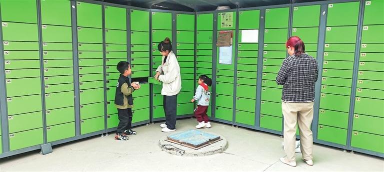 村民在智能快遞柜取快遞。