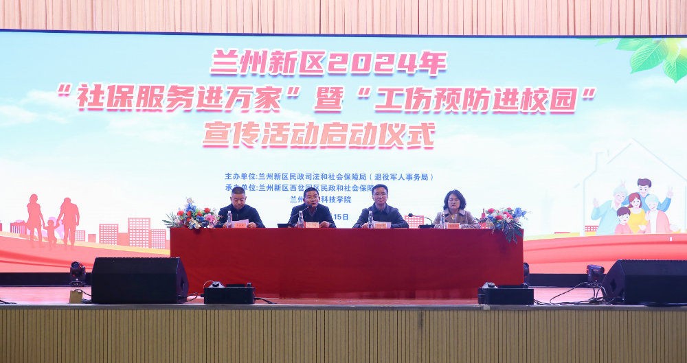 11月15日,蘭州新區(qū)2024年“社保服務進萬家”暨“工傷預防進校園”活動啟動儀式在蘭州信息科技學院體育館啟動。啟動儀式由蘭州新區(qū)民政司法和社會保障局主辦,西岔園區(qū)民政和社會保障局、蘭州信息科技學院承辦,各園區(qū)民政和社會保障局分管領導、工作人員,學校領導、教職工及學生等共400余人參加了啟動儀式。