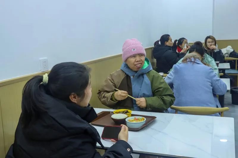 幸福食堂寬敞明亮的餐廳環(huán)境讓人眼前一亮,用餐區(qū)干凈舒適,桌椅排列得井井有條。記者瀏覽菜單時發(fā)現(xiàn),菜品豐富多樣,葷素搭配均衡,從地道的各式面食到精致的小炒,應(yīng)有盡有。