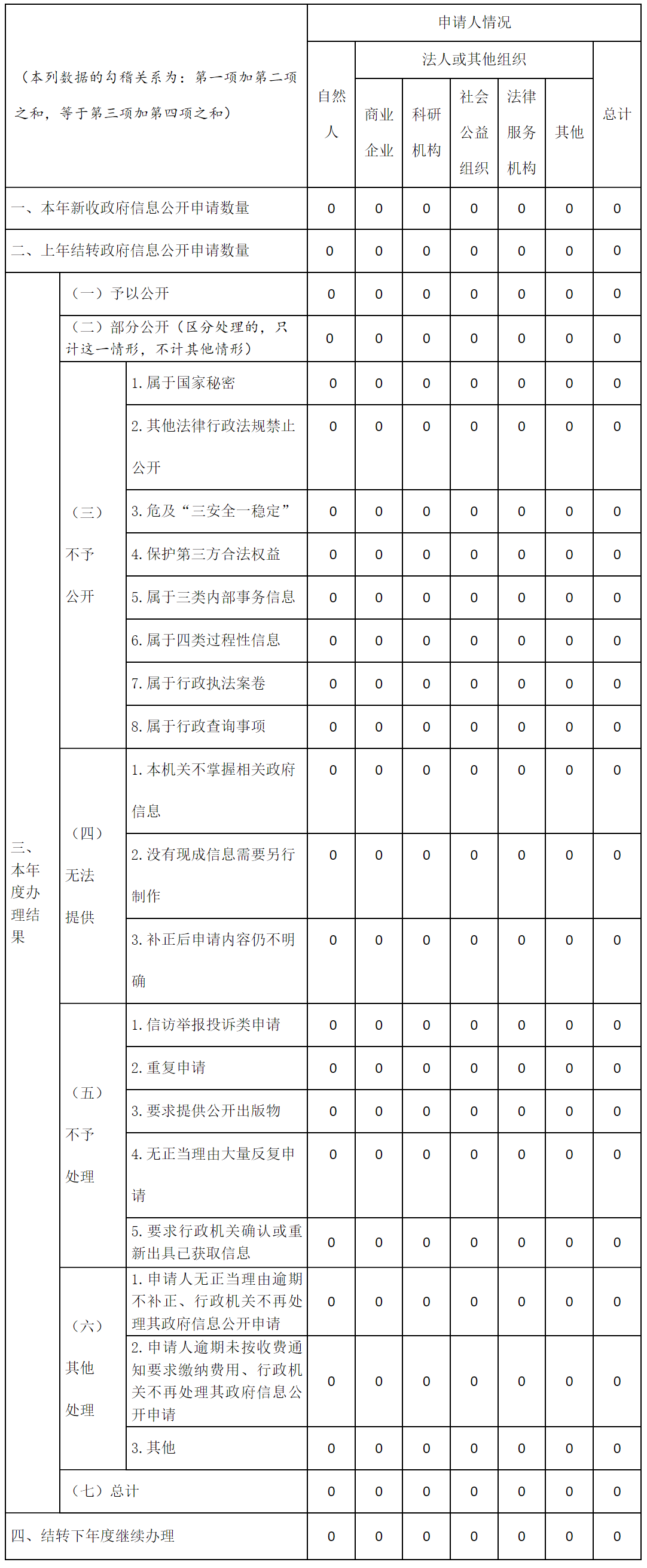 ?。ǘ┮郎暾埞_情況。全年未收到依申請公開事項。