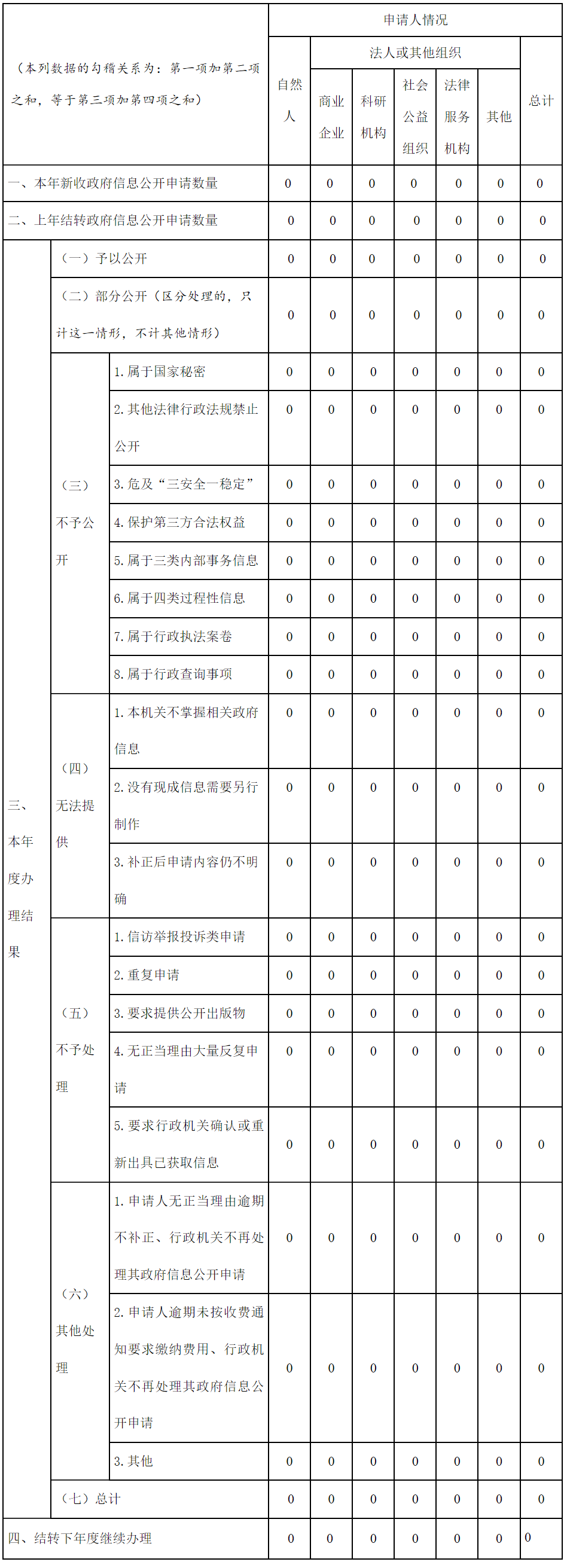 根據(jù)《中華人民共和國政府信息公開條例》(國務(wù)院令711號)的規(guī)定和蘭州新區(qū)政務(wù)公開領(lǐng)導(dǎo)小組辦公室《關(guān)于做好2024年政府信息公開工作年度報(bào)告編制和發(fā)布工作的通知》要求,蘭州新區(qū)審計(jì)局編制本報(bào)告,包括總體情況、主動(dòng)公開政府信息情況、收到和處理政府信息公開申請情況、政府信息公開行政復(fù)議和行政訴訟情況、存在的主要問題及改進(jìn)情況、其他需要報(bào)告的事項(xiàng)等六個(gè)部分,報(bào)告所列數(shù)據(jù)的統(tǒng)計(jì)期限為2024年1月1日至12月31日。