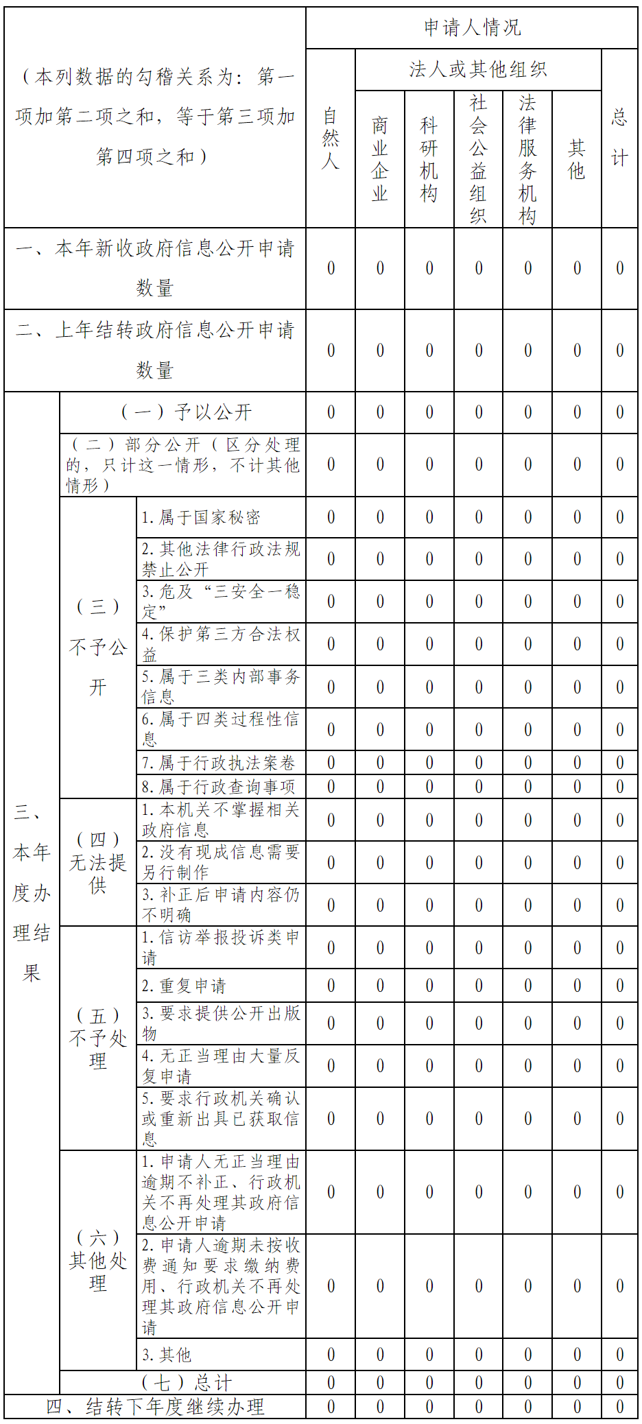 截至2024年12月31日,我局收到和處理政府信息公開(kāi)申請(qǐng)0件。