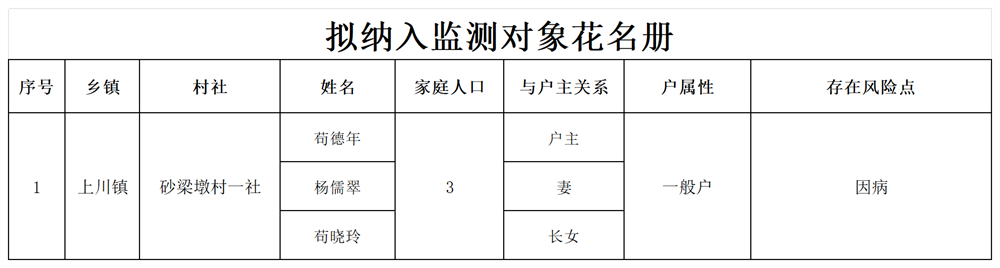擬納入監(jiān)測(cè)對(duì)象花名冊(cè)