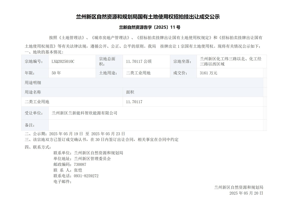 蘭州新區(qū)自然資源和規(guī)劃局國有土地使用權(quán)招拍掛出讓成交公示