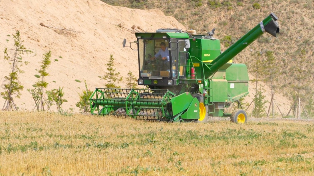 盛夏時(shí)節(jié),中川鎮(zhèn)生態(tài)修復(fù)及耕地提升改造項(xiàng)目區(qū)內(nèi),922畝濟(jì)麥22號(hào)冬小麥迎來(lái)豐收季。