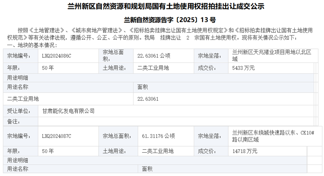 蘭州新區(qū)自然資源和規(guī)劃局國有土地使用權(quán)招拍掛出讓成交公示