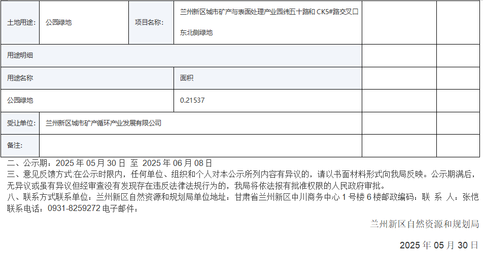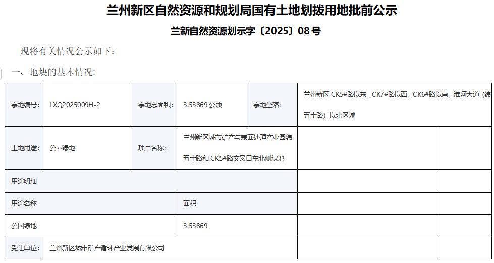 蘭州新區(qū)自然資源和規(guī)劃局國(guó)有土地劃撥用地批前公示