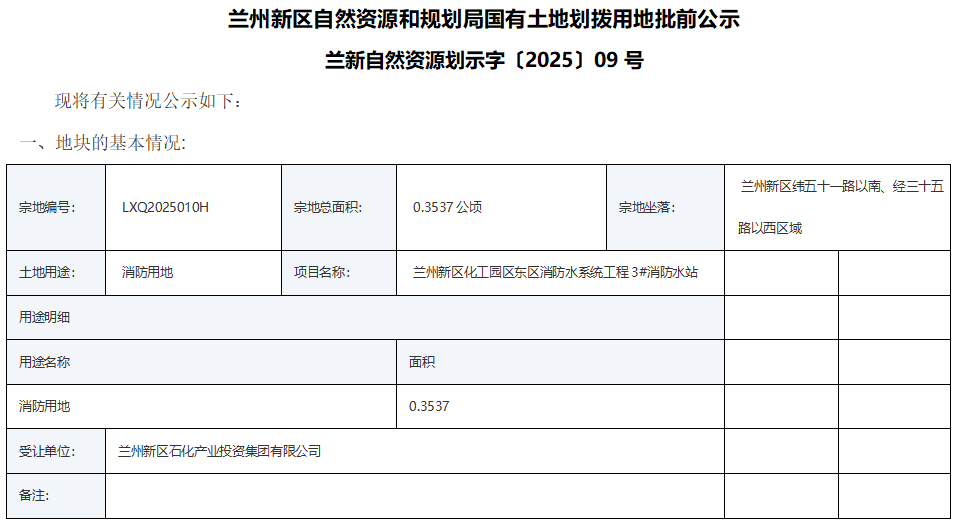 蘭州新區(qū)自然資源和規(guī)劃局國有土地劃撥用地批前公示