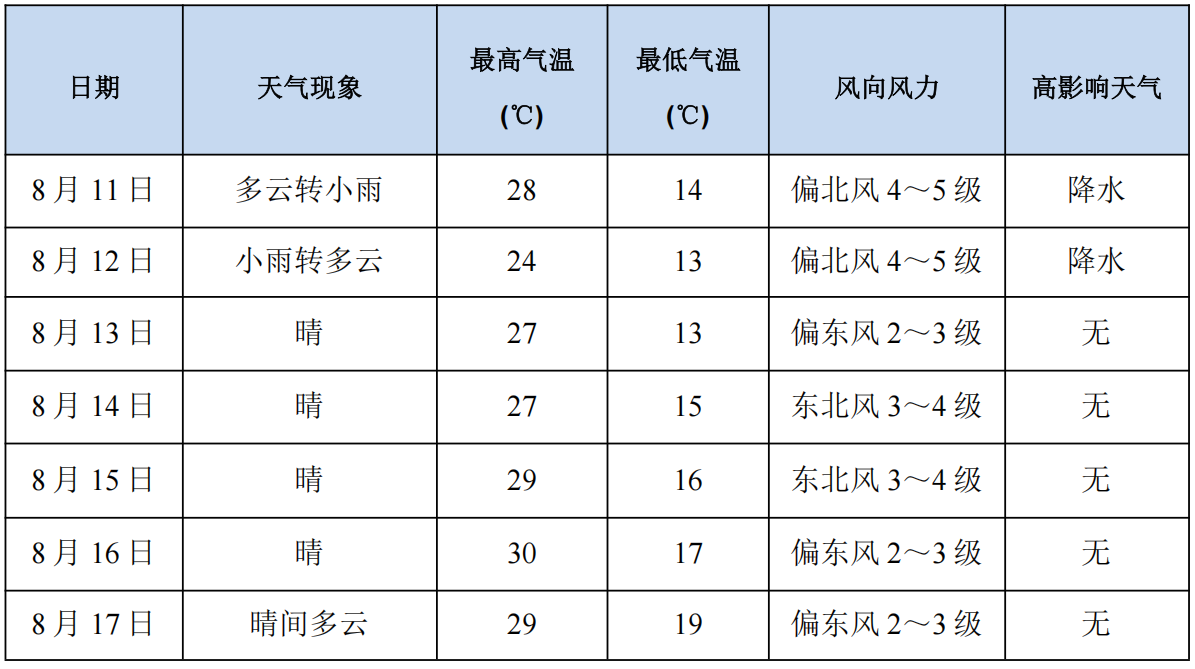 一、未來一周(8月11日-8月17日)天氣趨勢預(yù)報(bào)