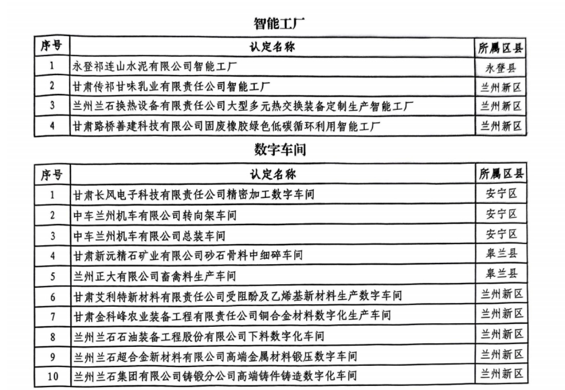 近日,蘭州市工業(yè)和信息化局公布了2025年市級智能工廠、數(shù)字車間、智能制造優(yōu)秀場景創(chuàng)建名單,蘭州新區(qū)多家企業(yè)上榜。