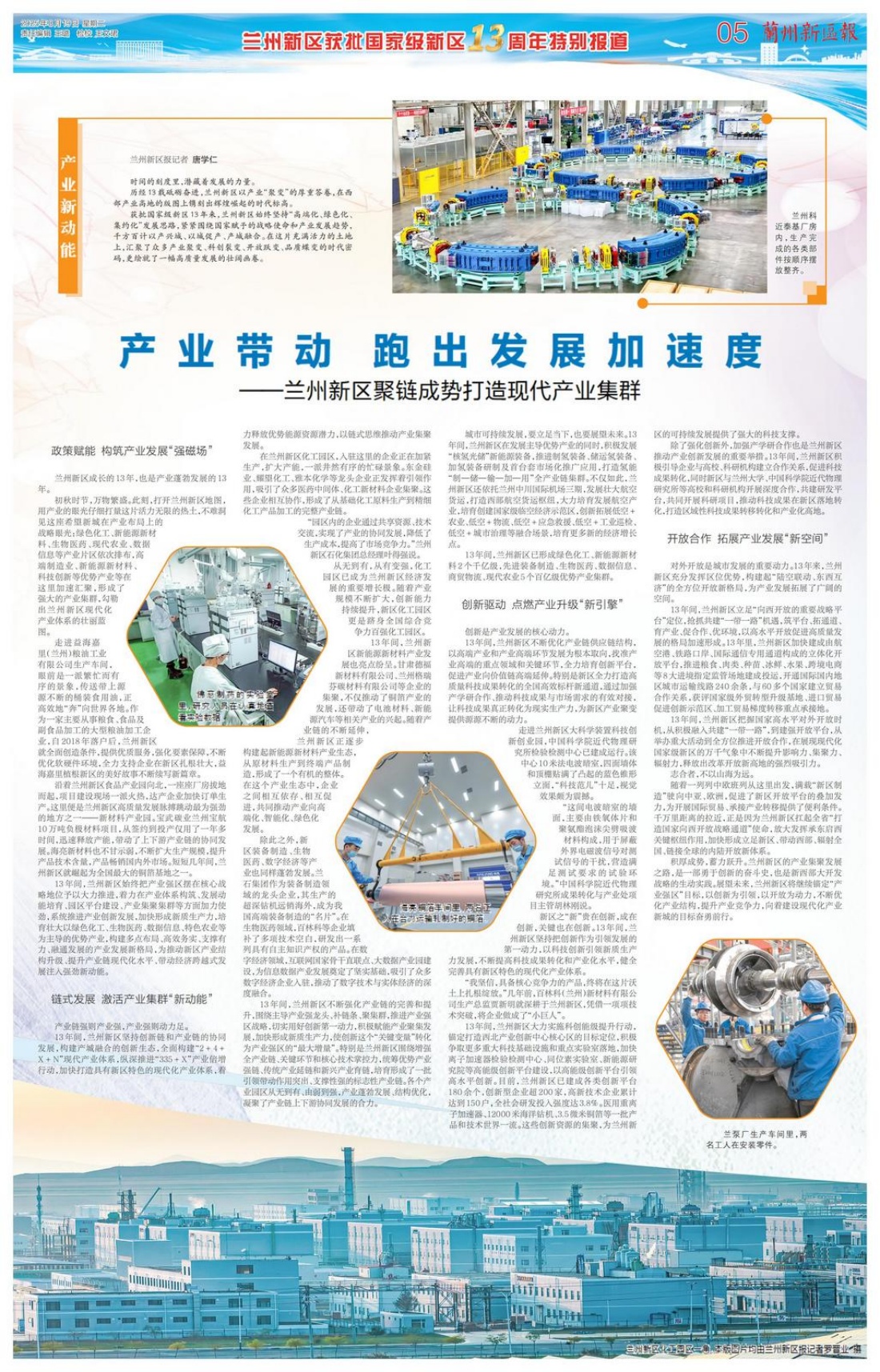 13年間,蘭州新區(qū)已形成綠色化工、新能源新材料2個(gè)千億級(jí),先進(jìn)裝備制造、生物醫(yī)藥、數(shù)據(jù)信息、商貿(mào)物流、現(xiàn)代農(nóng)業(yè)5個(gè)百億級(jí)優(yōu)勢(shì)產(chǎn)業(yè)集群。
