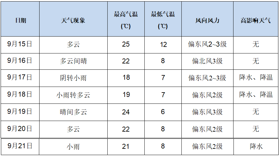 一、未來一周(9月15日-9月21日)天氣趨勢(shì)預(yù)報(bào)